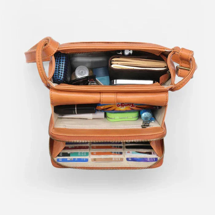 Apesar de seu design compacto, a Bolsa Bali é surpreendentemente espaçosa. Com um porta-cartões interno integrado, você pode organizar seus cartões e documentos de forma eficiente, sem ocupar espaço desnecessário. Além disso, ela comporta itens essenciais como celular, chaves, maquiagem, óculos e muito mais, mantendo tudo organizado e ao seu alcance.