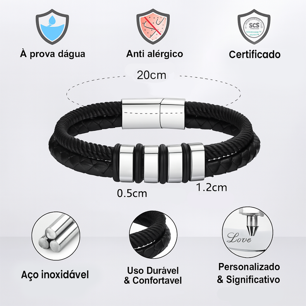 Esta pulseira personalizada é mais do que um simples acessório; é uma declaração de carinho, amor e gratidão por ter o melhor homem do mundo ao seu lado.