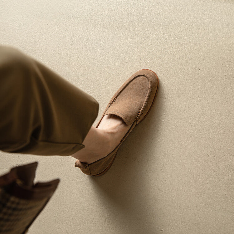 O sapato mocassim feminino Roterdã é uma verdadeira expressão de elegância e conforto. Feito em couro suede, esse mocassim é um testemunho da qualidade e suavidade dos materiais selecionados.