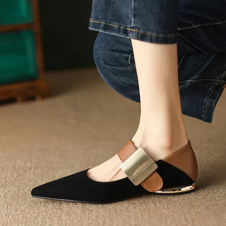 Explore o Udine Sapato Feminino de Camurça, onde o charme vintage se une à sofisticação moderna. Com design sem salto e bico fino, este sapato é ideal para quem busca um estilo clássico com um toque contemporâneo. O acabamento em couro ecológico e a fivela com detalhe dourado na base elevam o visual, proporcionando elegância e conforto em qualquer ocasião.